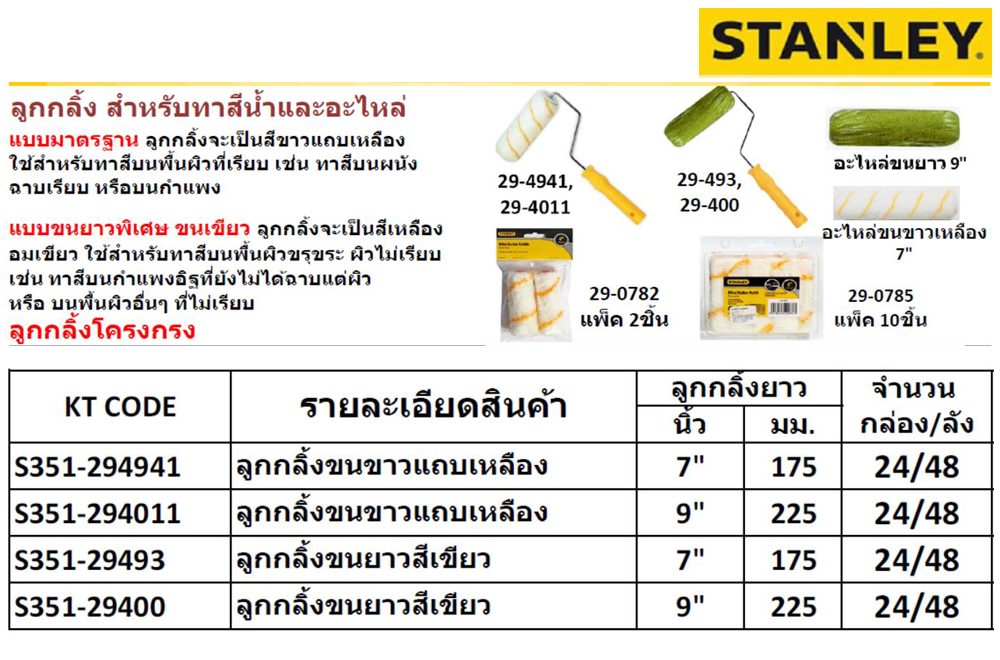 • STANLEY 29-480 ชุดลูกกลิ้ง 2 ชิ้น พร้อมถาด ขนาด 4 นิ้ว