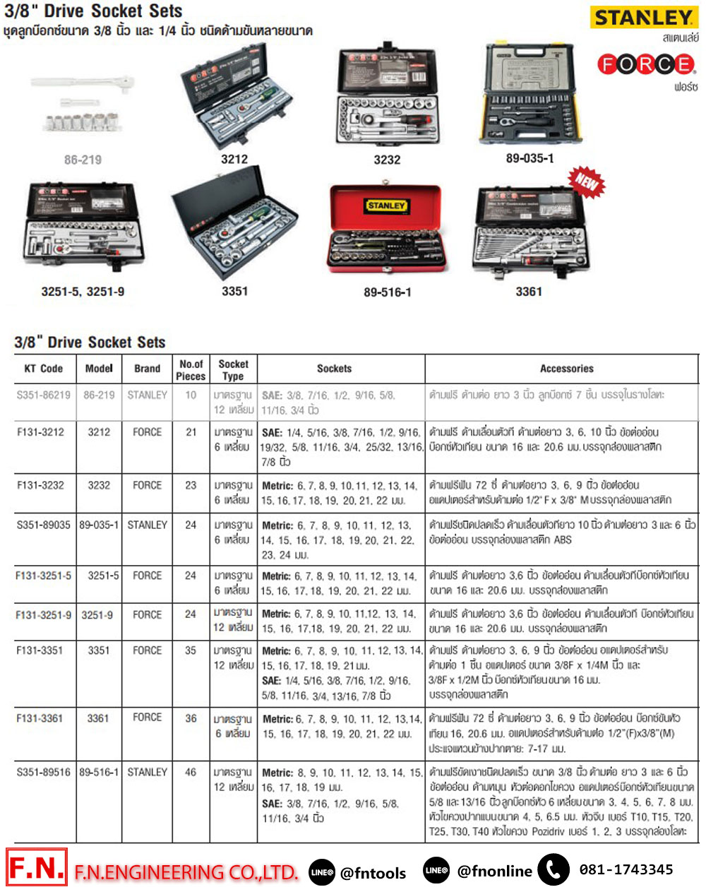 • สแตนเล่ย์ 89-035 ชุดลูกบ็อก 6เหลี่ยม 3/8″ชุด 24 ชิ้น