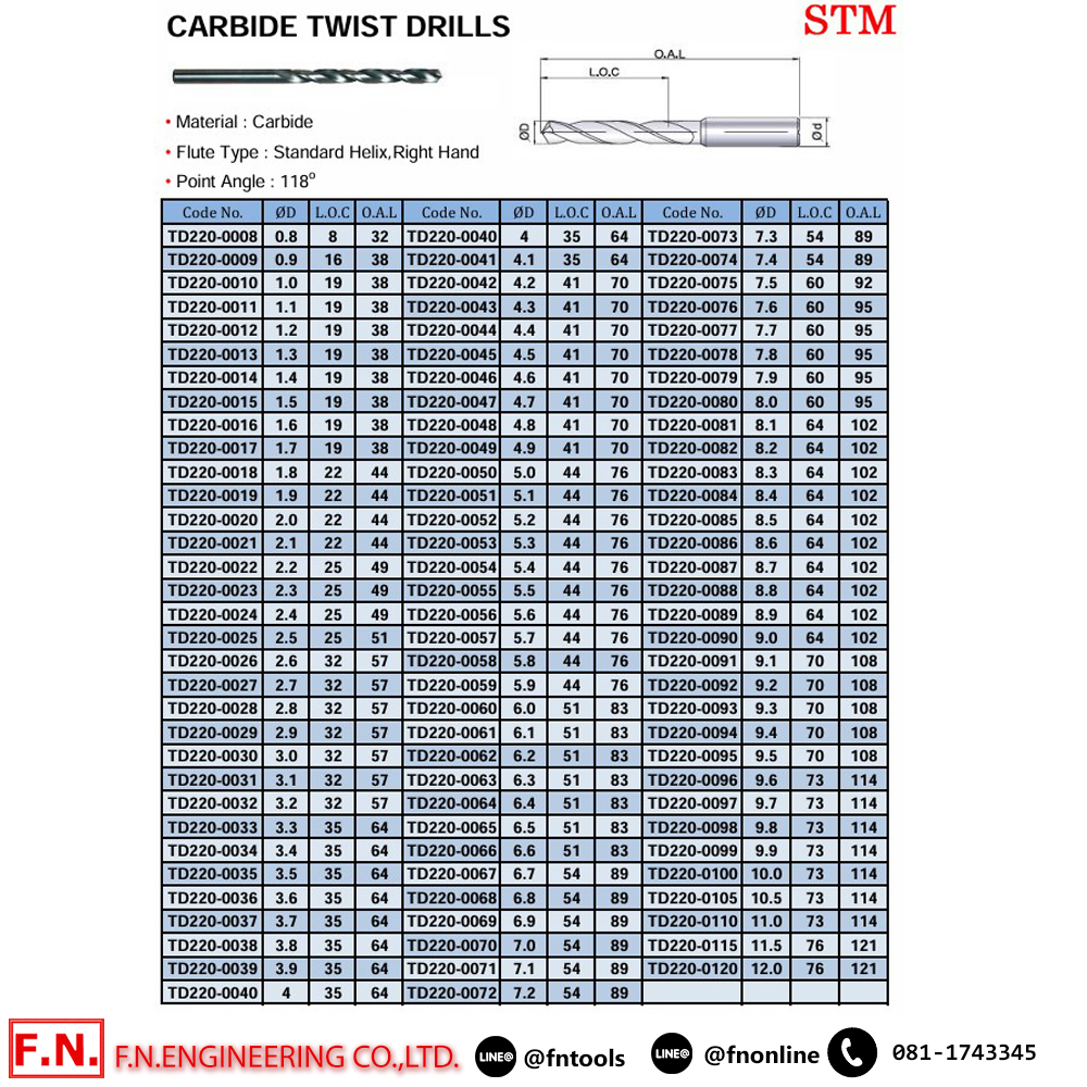 • STM TD220-0033 ดอกสว่านคาร์ไบท์ ขนาด 3.3x35x64 MM.