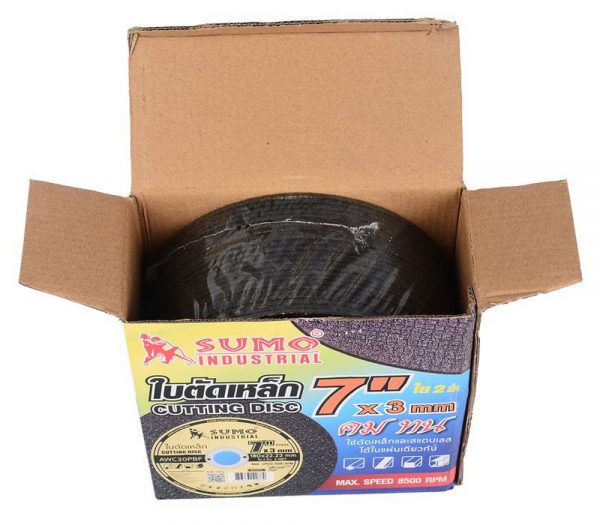 • ใบตัดเหล็ก/สแตนเลส 7 นิ้ว ใย 2 ชั้น SUMO ปลอดภัยที่สุดในบรรดาใบตัด 7 นิ้ว ด้วยเส้นใย 2 ชั้น ทำให้มีความทนทาน แข็งแรง ไม่แตกหักง่าย