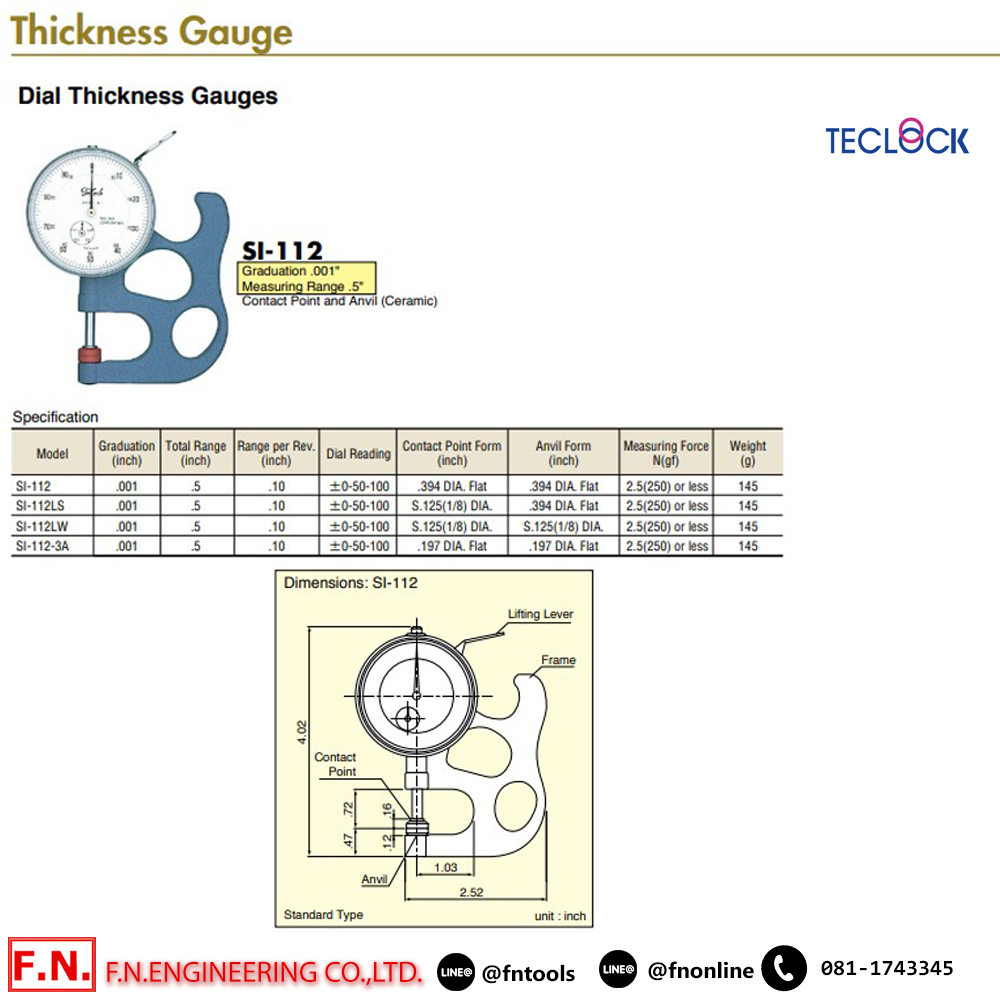 TECLOCK SI-112 เกจ์ตั้งศูนย์ ช่วงการวัด 0.50″