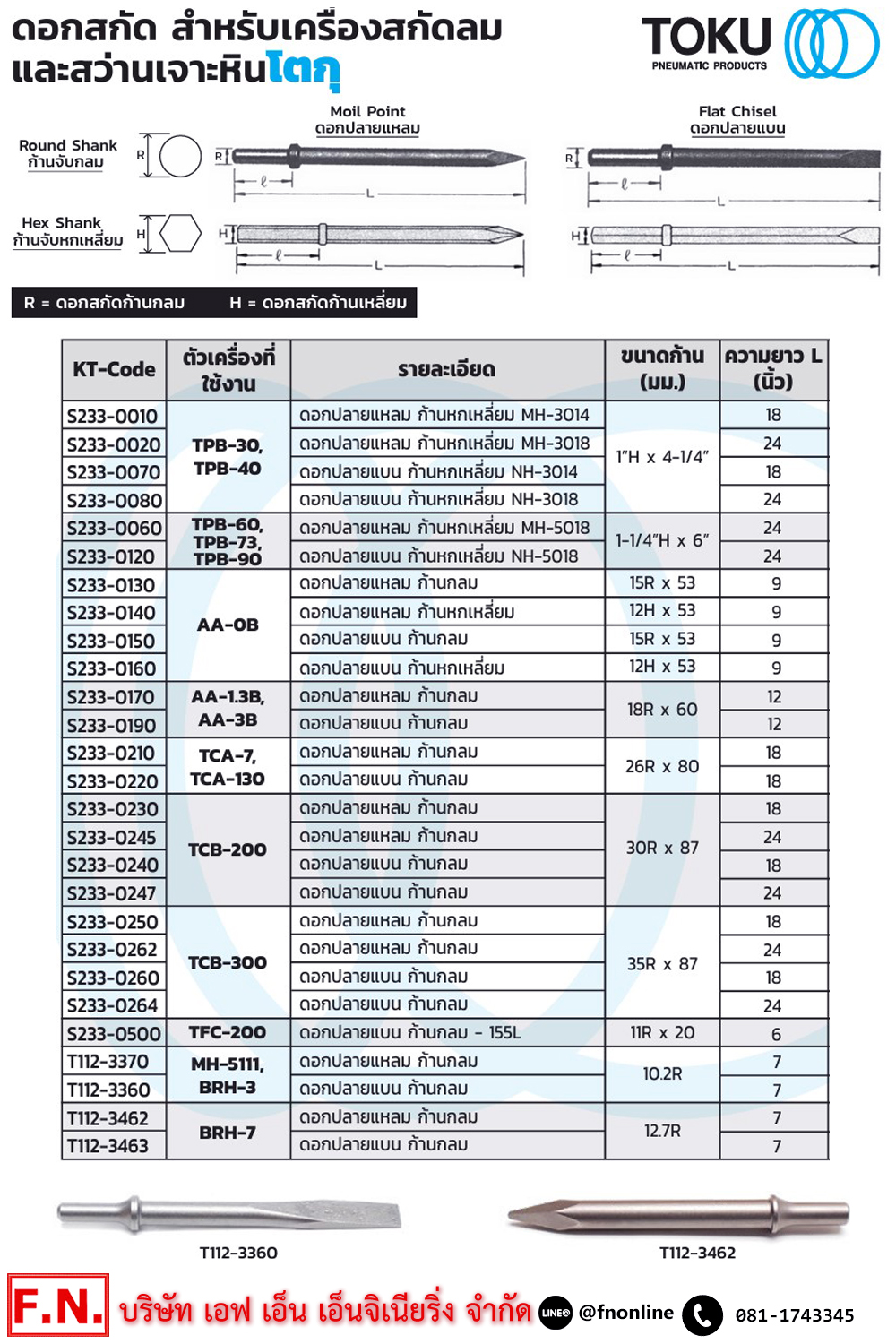 • ขนาดก้าน Dia : 18R x 60 mm.