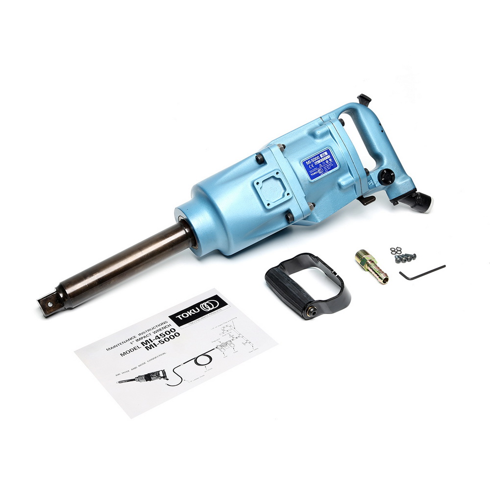บล๊อกลมกระแทกแบบด้ามตรง โตกุ (TOKU) รุ่น MI-5000GL แกนเพลา 1 นิ้ว แรงบิดสูงสุด 270 กิโลกรัม-เมตร ระบบคลัชแบบเดี่ยว ปริมาณลม 1.9 ลบ.ม./นาที ขนาดสายลม 1/2 นิ้ว