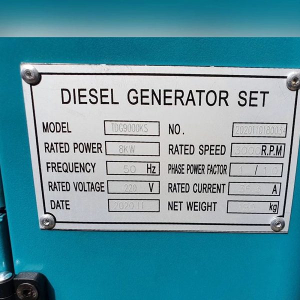 • TOSAKI TDG9000KS เครื่องปั่นไฟดีเซล 8KW/16HP 220V. เครื่องยนต์ 4 จังหวะ 2 ลูกสูบ ระบบ ATS