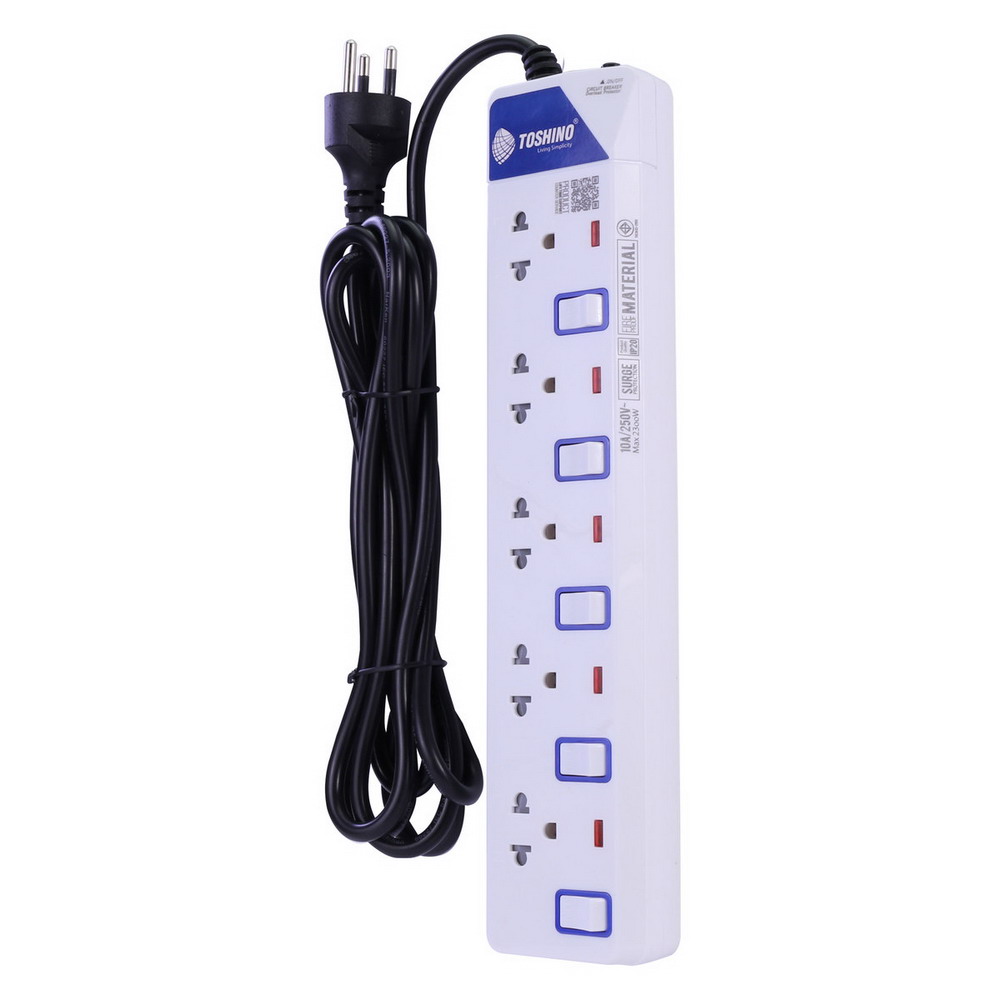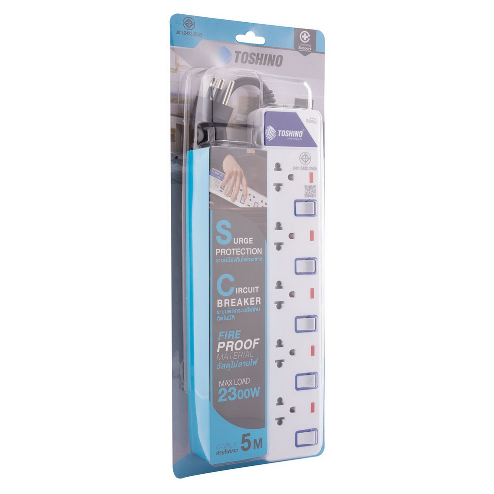 • รางปลั๊กไฟ TOSHINO ปลั๊กพ่วง 5 สวิตช์ 5 ช่อง สายไฟยาว 5 เมตร