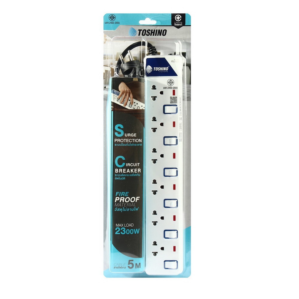 • รางปลั๊กไฟ TOSHINO ปลั๊กพ่วง 6 สวิตช์ 6 ช่อง สายไฟยาว 5 เมตร