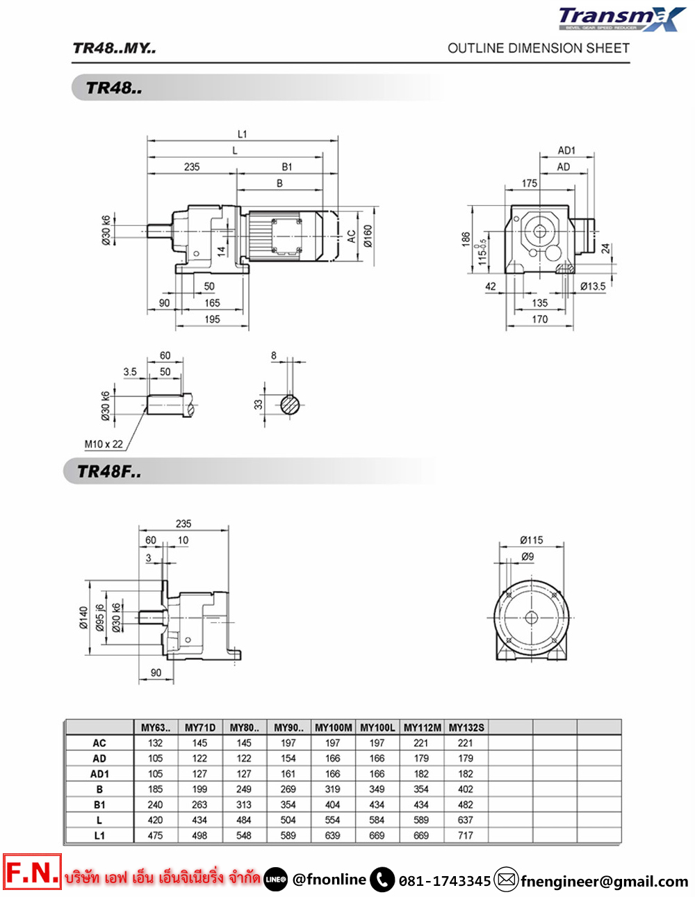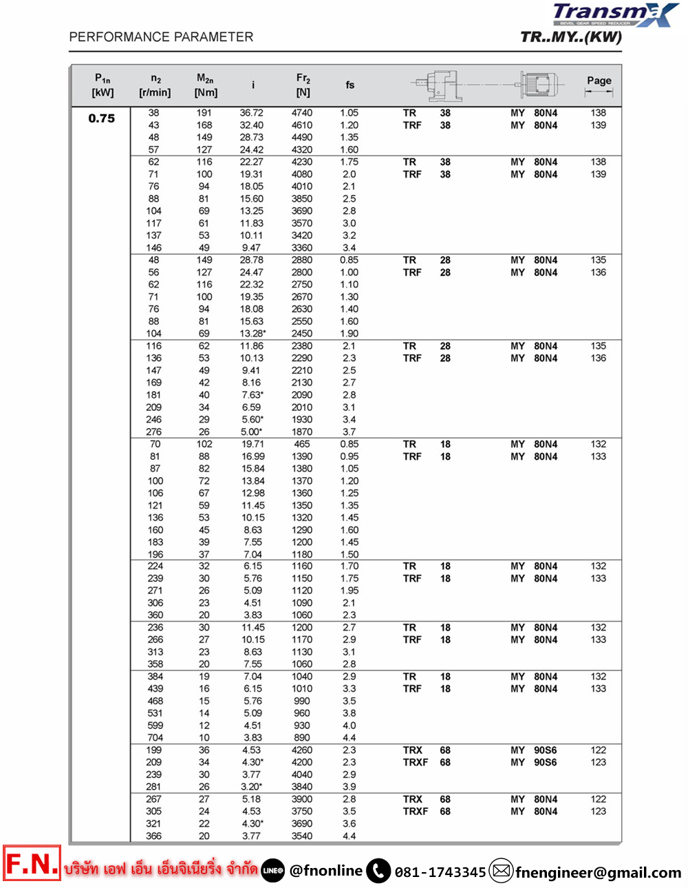 • TRANSMAX TR48-AM80 เฉพาะหัวเกียร์ ใช้กับมอเตอร์หน้าแปลน 1HP.อัตราทด 29.88∼42.87