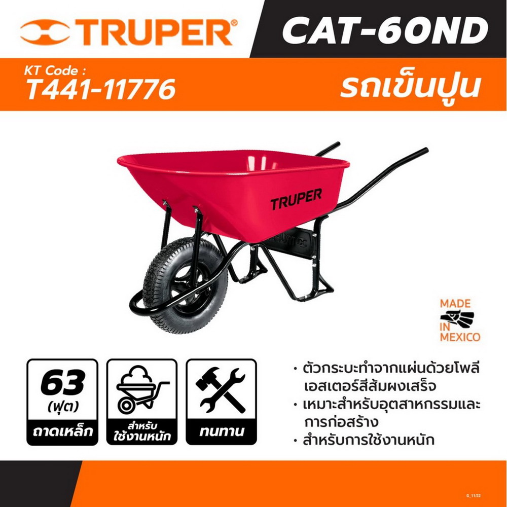 • รถเข็นปูนถาดเหล็ก สีแดง 6.3 ฟุต ยางลม TRUPER รุ่น 11776