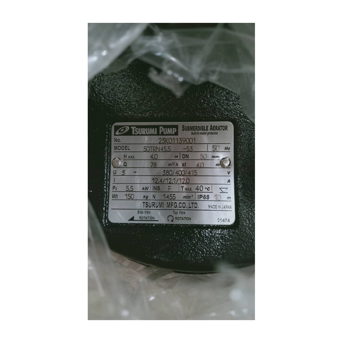 TSURUMI 50-TRN45.5 เติมอากาศแบบจุ่มบำบัดน้ำเสีย 7.5HP 380V. ท่อส่ง 2″