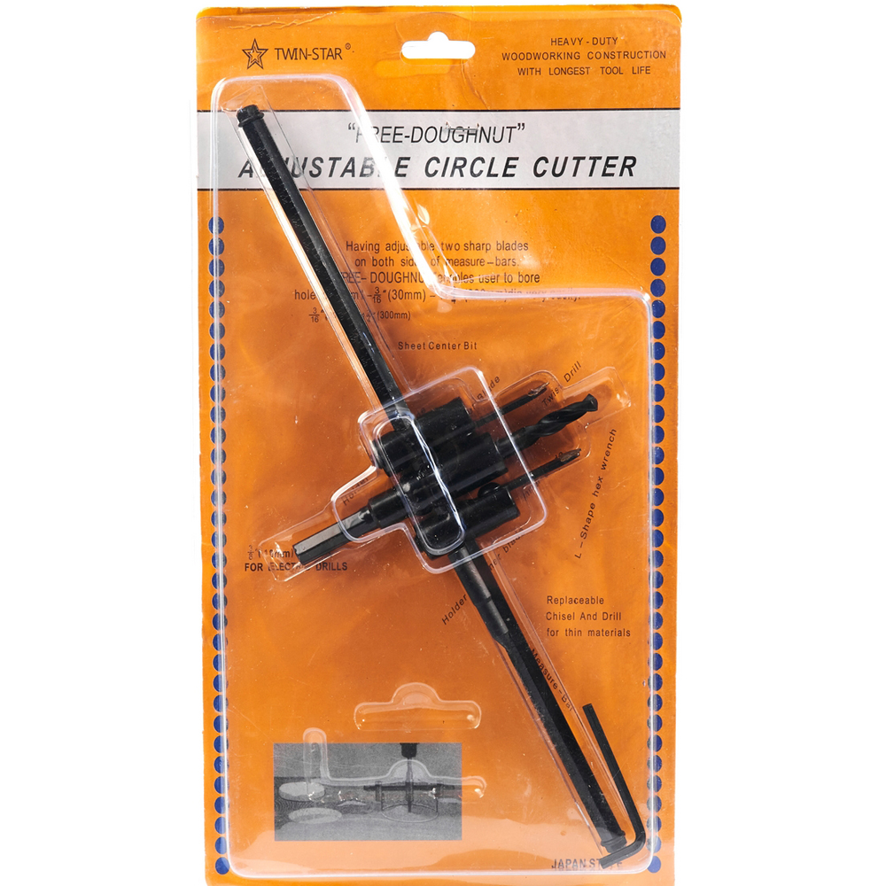 TWIN STAR ดอกโฮลซอเจาะฝ้า ปรับระดับได้ตั้งแต่ ขนาด 30-300 มม. เหมาะสำหรับเจาะเพดาน หรืองานเจาะรูกลมทั่วไป ามารถเจาะรูกลมได้หลายขนาด สามารถใช้กับสว่านไฟฟ้าที่มีก้านขนาด 10 มม. (ทวิน สตาร์)