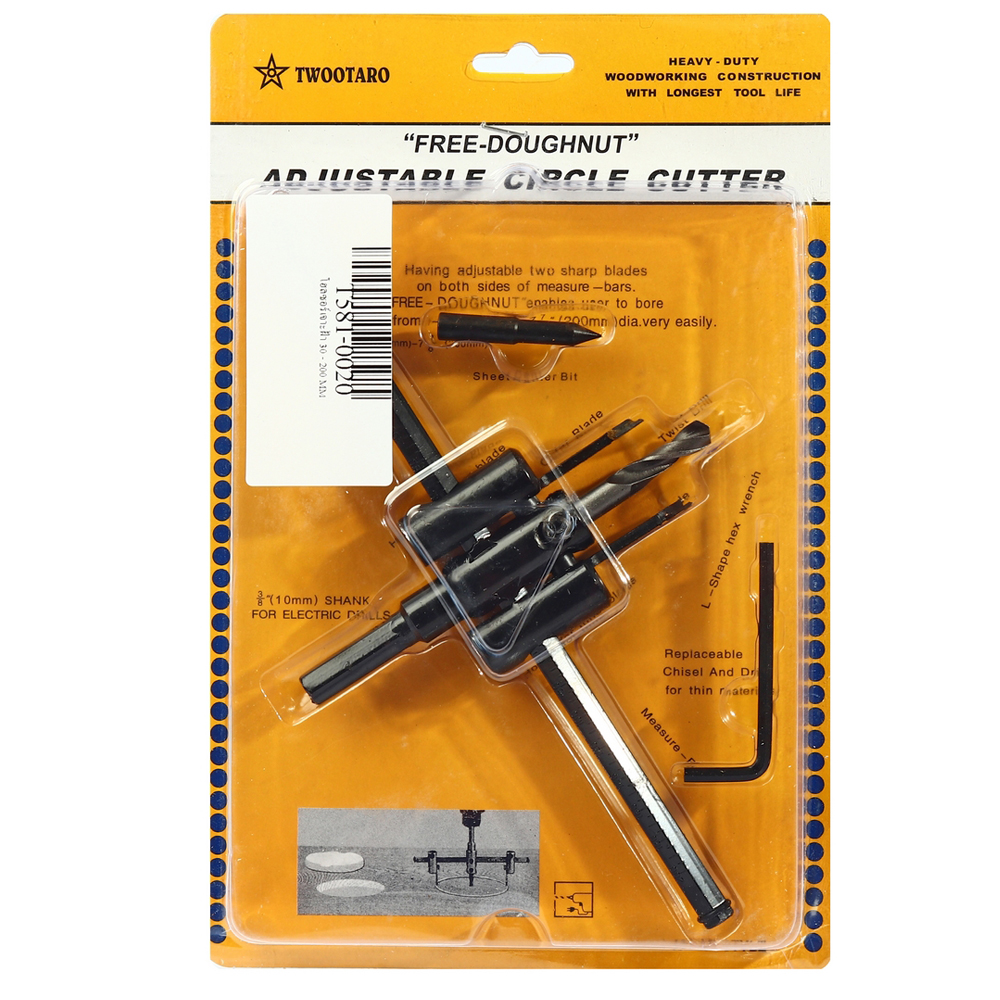 TWIN STAR ดอกโฮลซอเจาะฝ้า ปรับระดับได้ตั้งแต่ ขนาด 30-200 มม. เหมาะสำหรับเจาะเพดาน หรืองานเจาะรูกลมทั่วไป ามารถเจาะรูกลมได้หลายขนาด สามารถใช้กับสว่านไฟฟ้าที่มีก้านขนาด 10 มม. (ทวิน สตาร์)