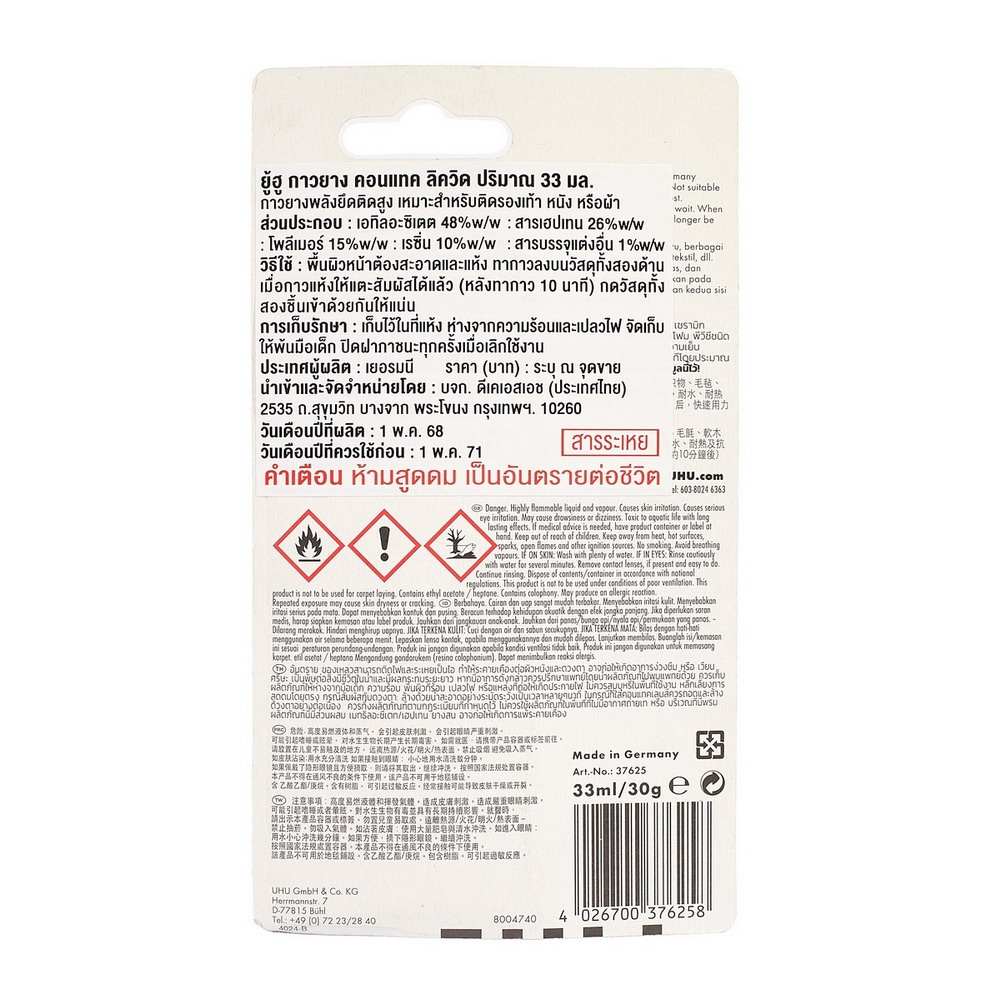 • UHU ยู้ฮูกาวยาง 33 มล. กาวยางพลังยึดสูง ติดแน่น และรวดเร็ว