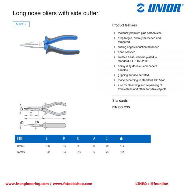 UNIOR 506/1BI คีมปากปากแหลม 6.1/4″(160MM)