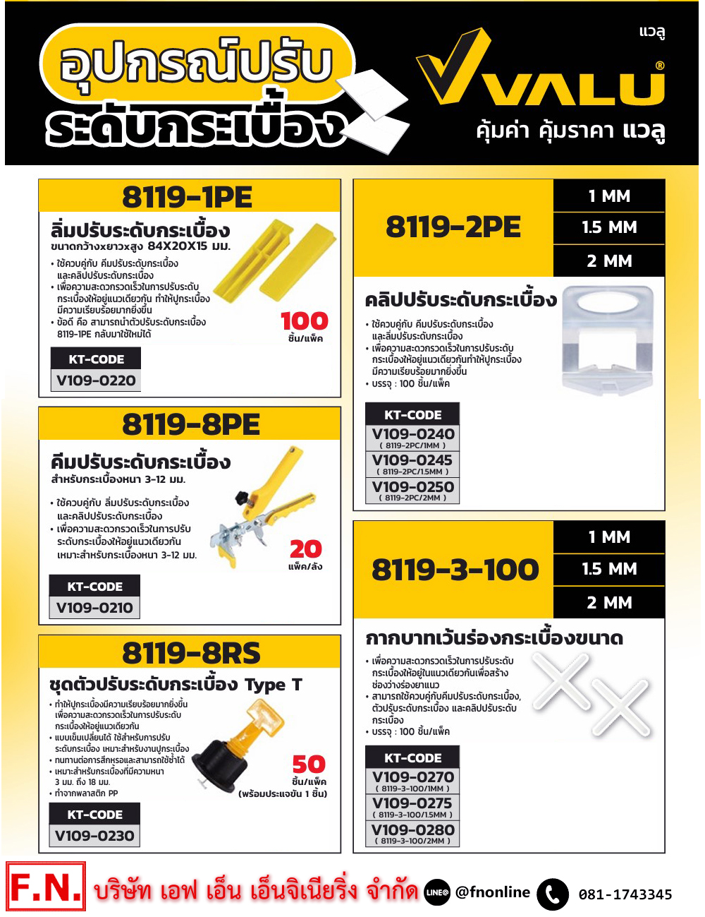 • คีมปรับระดับกระเบื้อง VALU รุ่น 8119-8PE ใช้ควบคู่กับลิ่มปรับระดับกระเบื้องและคลิปปรับระดับกระเบื้อง