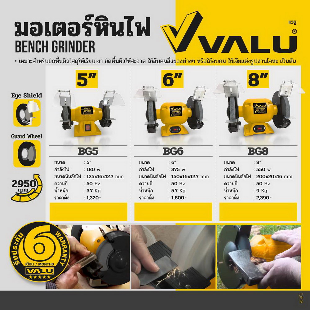 VALU BG5 มอเตอร์หินไฟ กำลังไฟ 180W. ขนาด 5 นิ้ว เหมาะสำหรับงาน ขัด เจียร ตกแต่ง