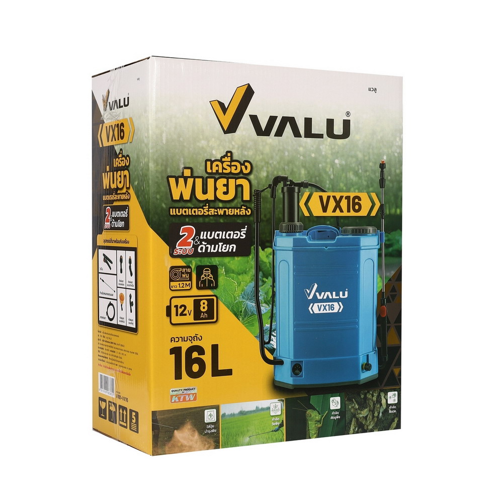 VALU เครื่องพ่นยาแบตเตอรี่สะพายหลัง 2IN1 16L รุ่น VX16 แบตเตอรี่ 12V/8Ah สายยาว 1.2 เมตร สำหรับพ่นยากำจัดศัตรูพืช