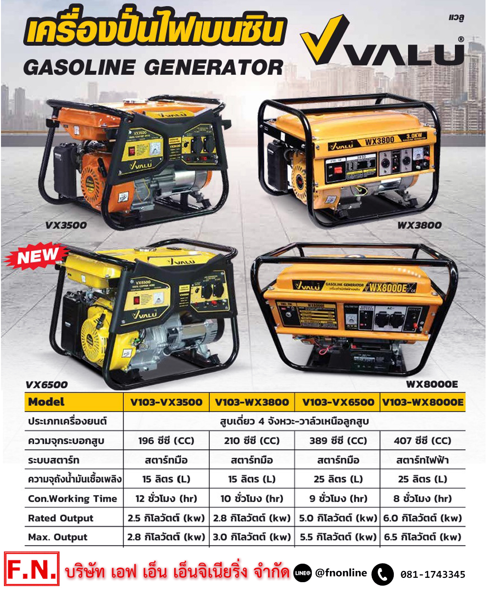 • เครื่องปั่นไฟเบนซิน VALU รุ่น VX6500