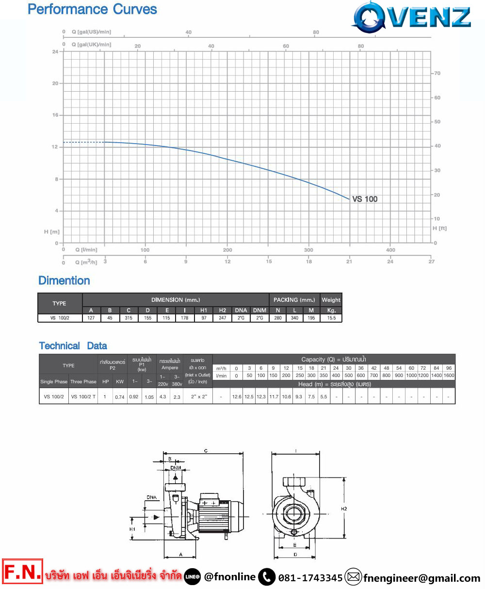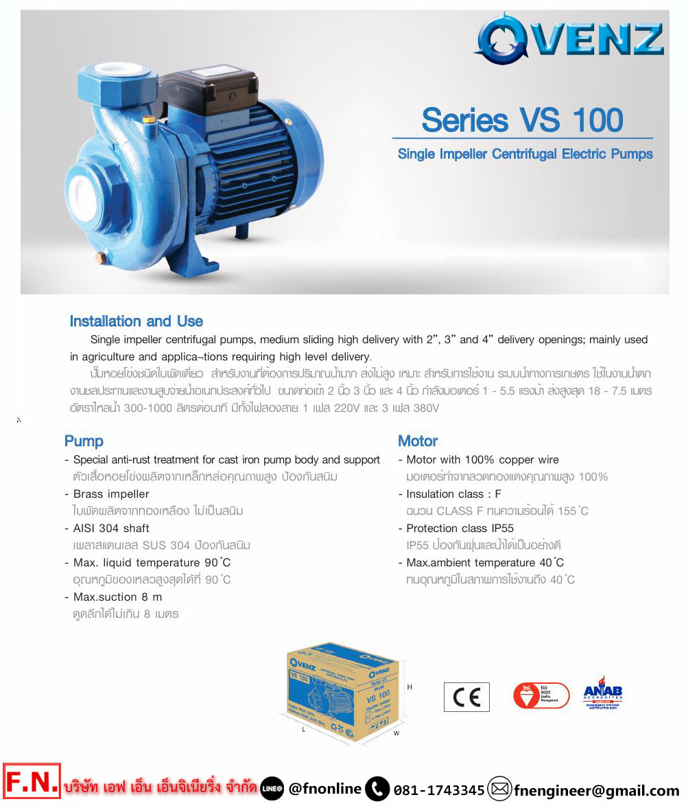 VENZ VS100/2T ปั๊มน้ำหอยโข่ง 1 ใบพัด 1HP 380V ท่อ 2 นิ้ว x 2 นิ้ว ชนิดน้ำปริมาณมาก