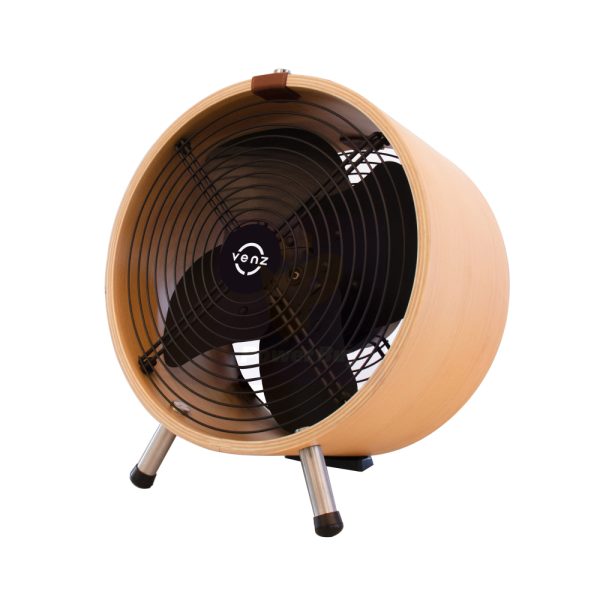 VENZ WF-12 พัดลมตกแต่งทรงกลม พัดลมตั้งพื้น 12 นิ้ว 90W. รุ่นถังไม้ สีบีช