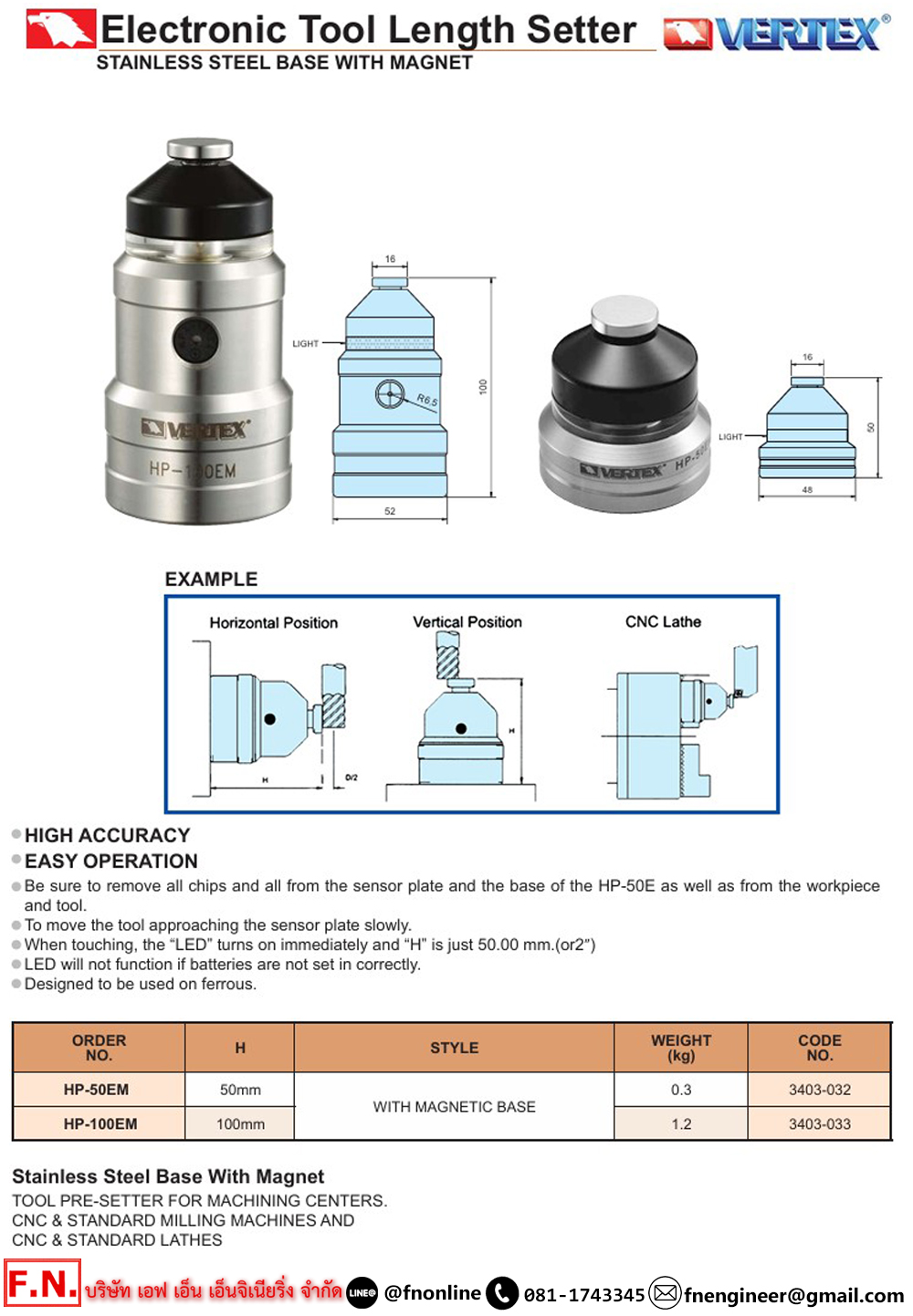 VERTEX HP-50EM เกจเช็คความยาว ฐานสแตนเลสมีแม่เหล็ก Height 50MM.