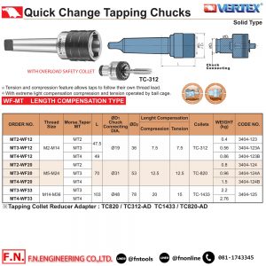 VERTEX K1-MT2 หัวต๊าปแบบพลิกกลับ ด้าม MT2 ขนาดต๊าป M2-M8