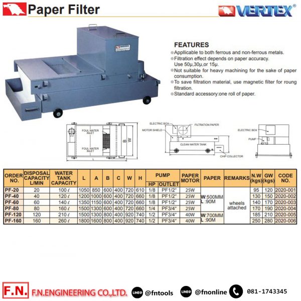 VERTEX PF-80 เครื่องกรองกระดาษ 25W. ความจุ 80 ลิตร/นาที