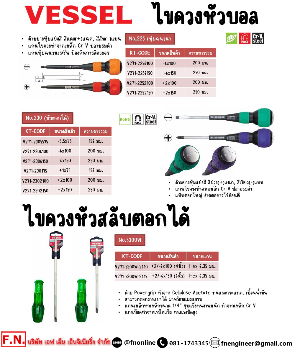 • ด้ามจับหุ้มด้วยวัสดุ Phillips และ Slotted ระบุรหัสสี