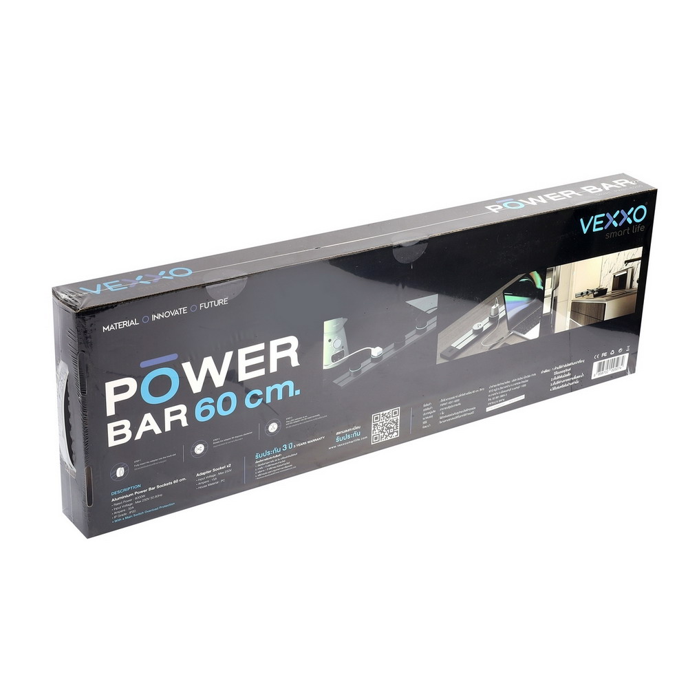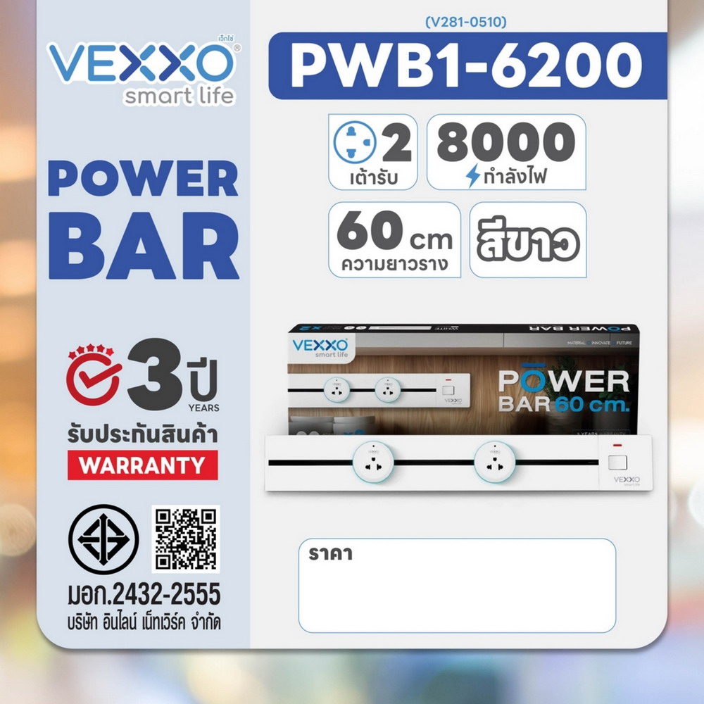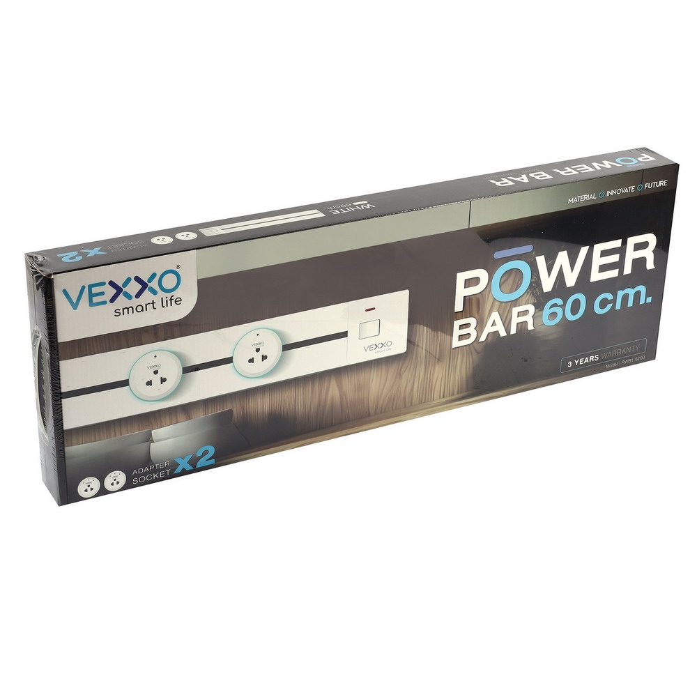 VEXXO PWB1-6200 ชุดรางไฟเลื่อนได้ 8000W/32A รางยาว 60 ซม. พร้อมเต้ารับ 2 ชิ้น สีขาว (ไม่มีสายไฟใน SET)