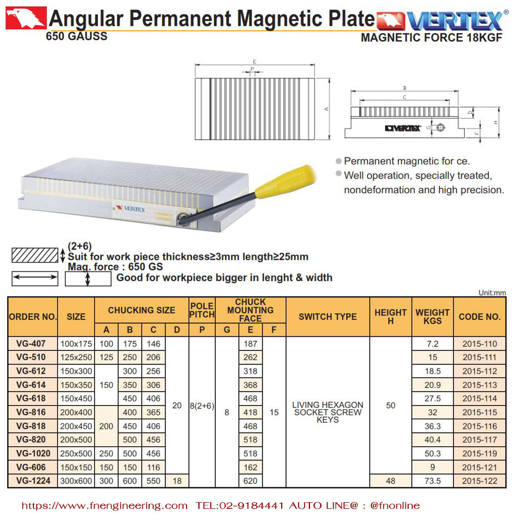 VG-618 แม่เหล็กถาวร แบบมือโยก ขนาด 150X450 MM