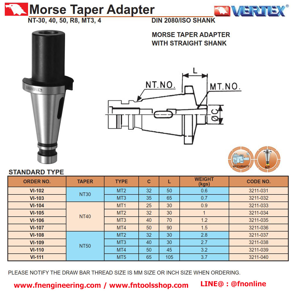 VI-105 หัวจับด้าม NT40 ต่อก้านเทเปอร์ MT2