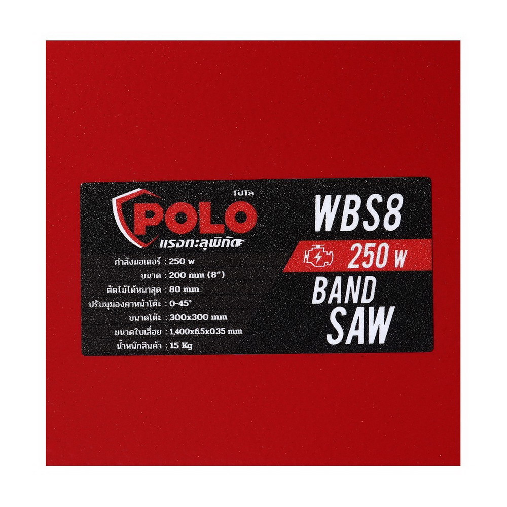 POLO แท่นเลื่อยสายพาน มอเตอร์ 250 วัตต์ ขนาด 8 นิ้ว (200 มม.) รุ่น WBS8 ตัดสูงสุด 80 มม. ความเร็วรอบ 1,420 รอบ/นาที ปรับมุมองศา 0 – 45 องศา