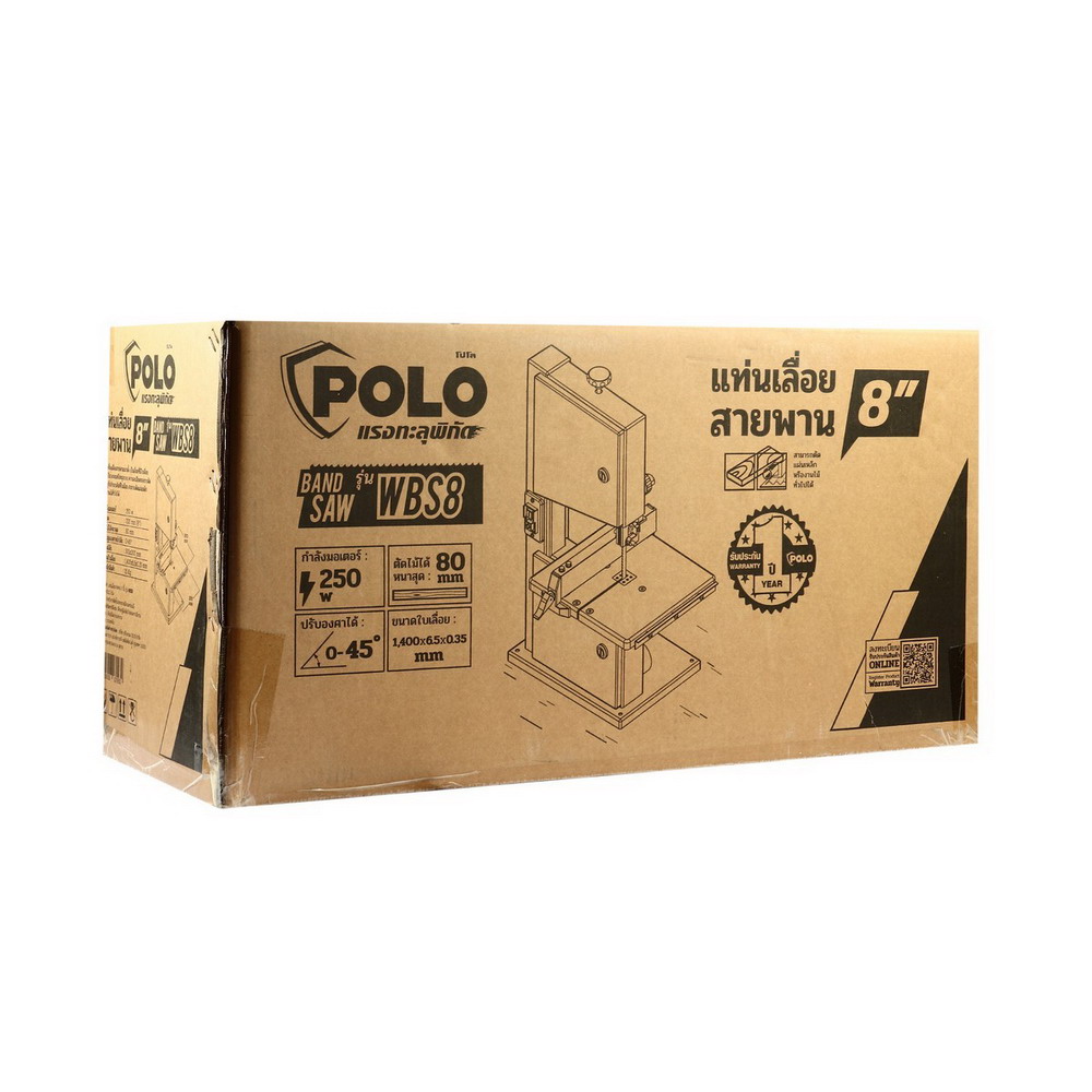 POLO WBS8 แท่นเลื่อยสายพาน 250W. 220V. 8 นิ้ว ตัดสูงสุด 80MM. ปรับมุมองศา 0-45 องศา