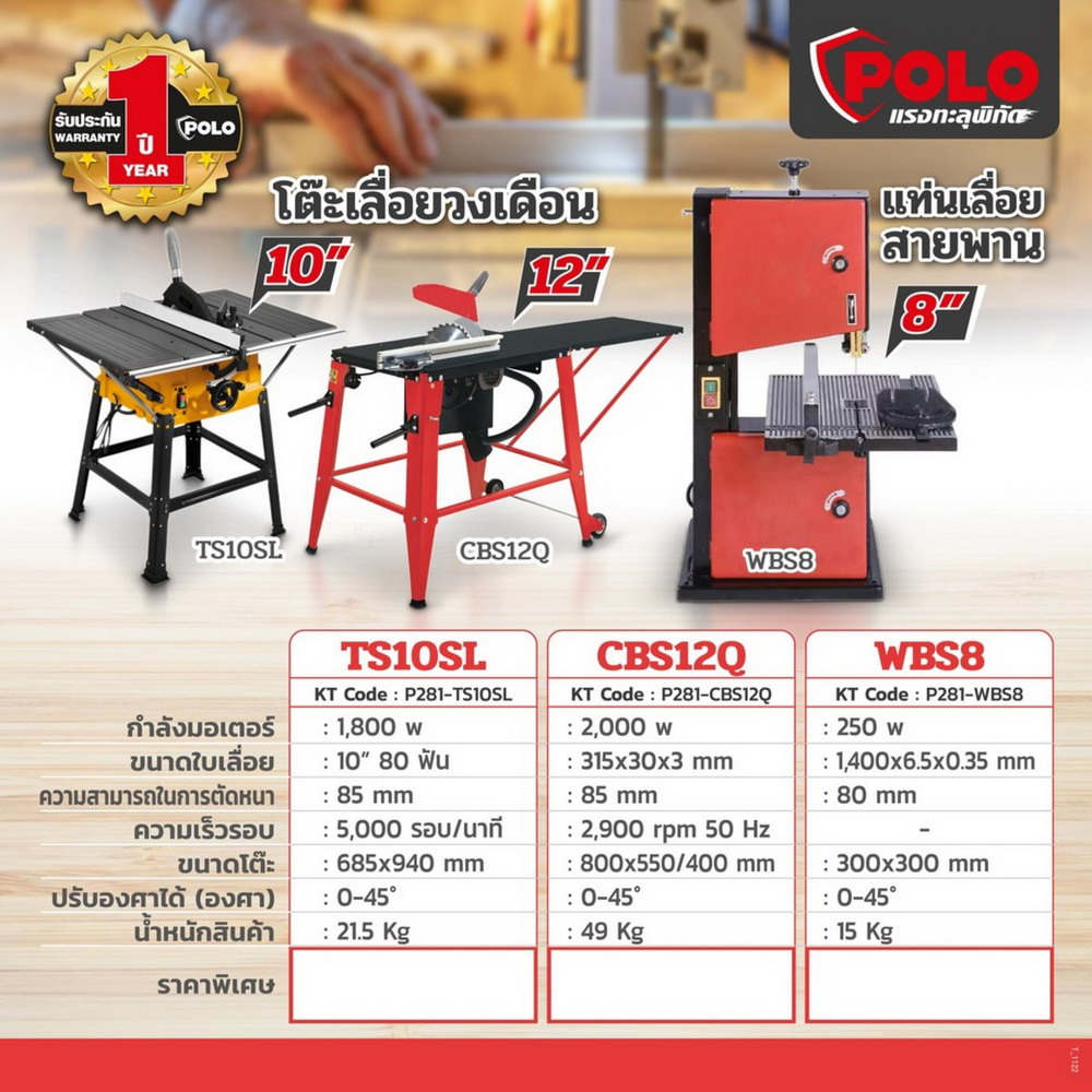 • แท่นเลื่อยสายพาน POLO รุ่น WBS8
