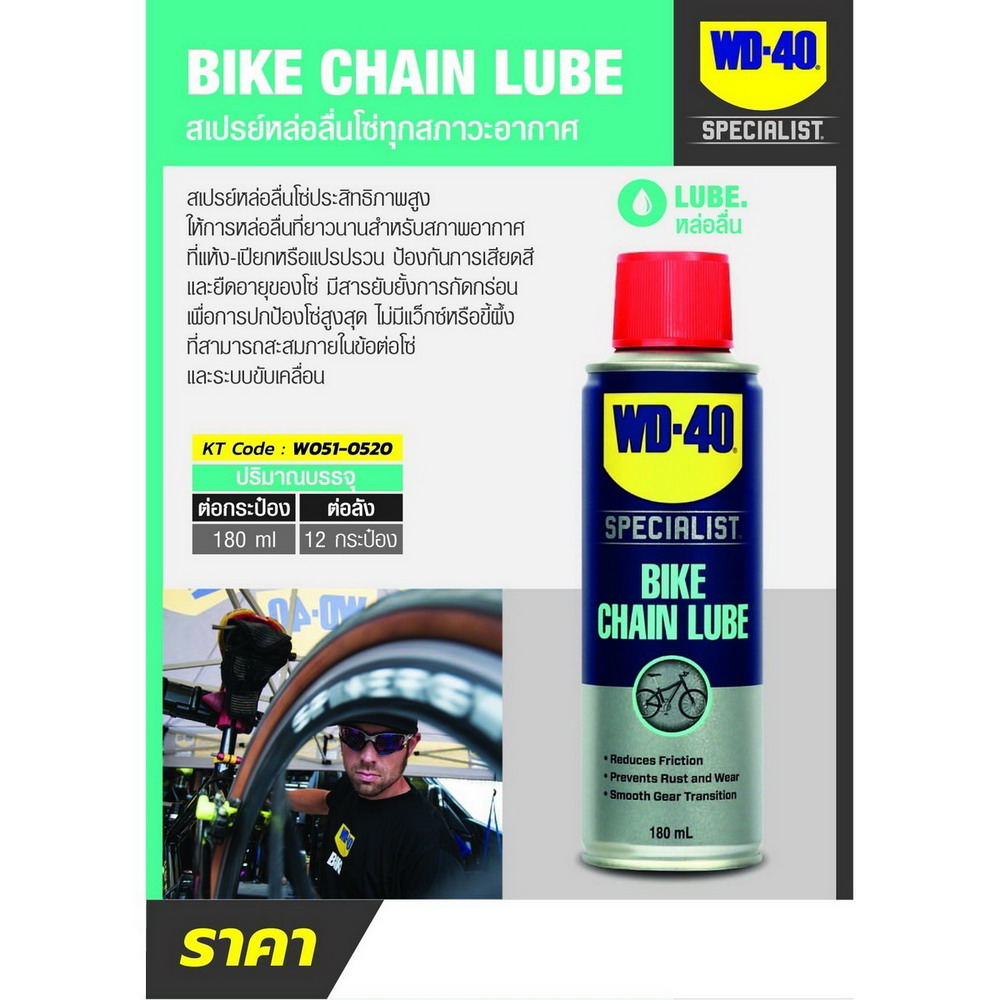 • WD-40 BIKE สเปรย์หล่อลื่นโซ่ 180 มิลลิลิตร เหมาะกับทุกสภาวะการใช้งานพื้นแห้งและเปียก