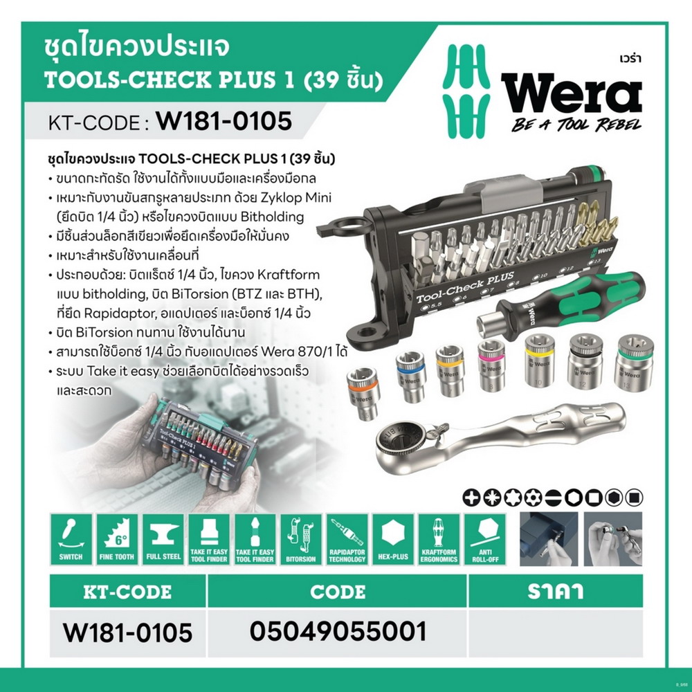 • WERA 05049055001 ชุดไขควงและประแจ TOOLS-CHECK PLUS1 จำนวน 39 ชิ้น