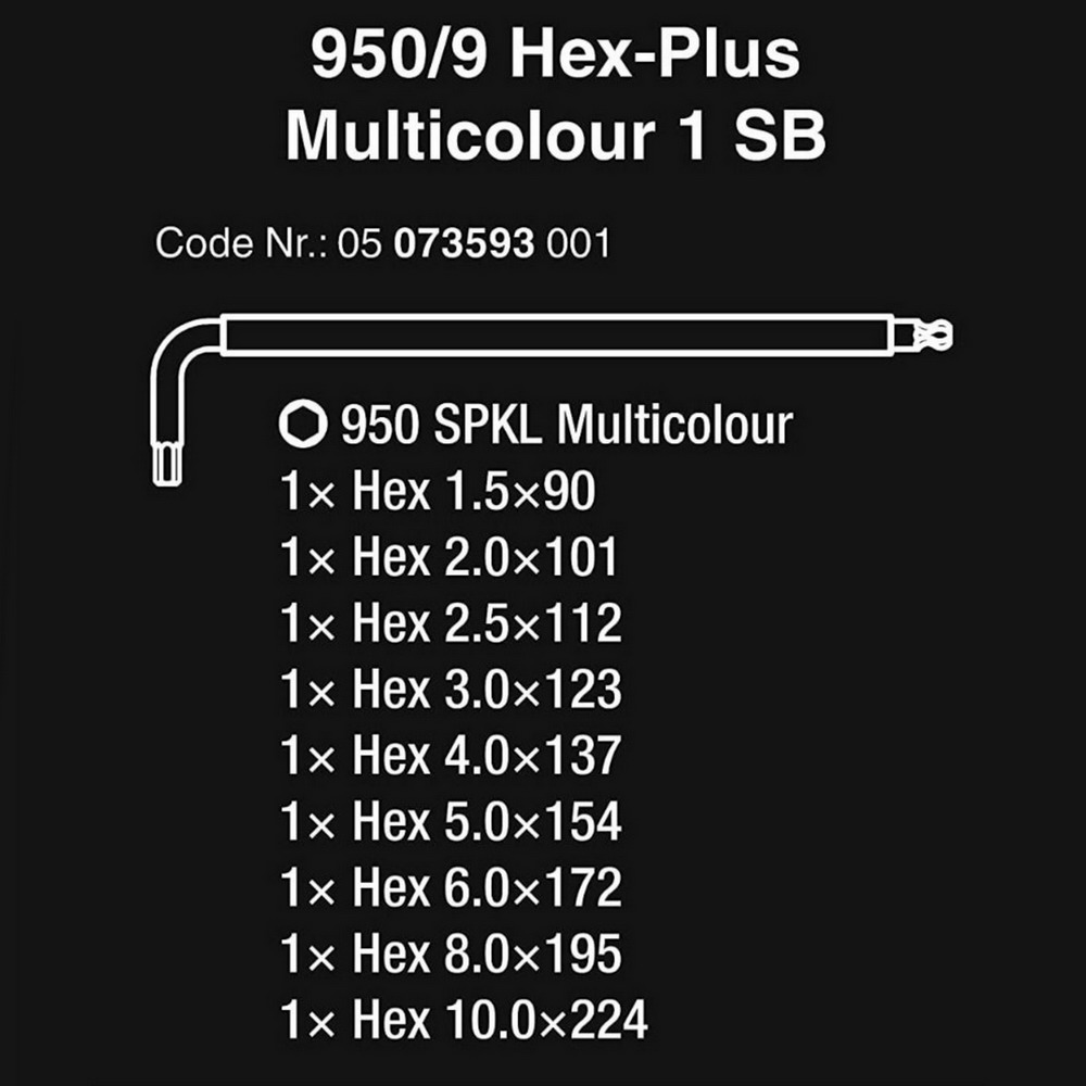 WERA 05073593001 ชุดประแจหกเหลี่ยมหัวบอล 950/9 Hex-Plus Multicolour