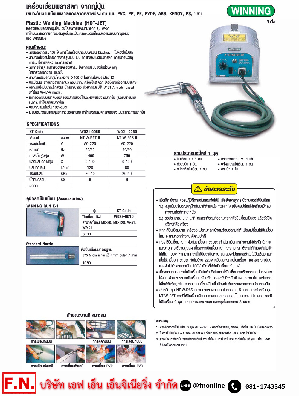 • WINNING K-1 ปืนเชื่อมพลาสติก ใช้กับ เครื่องเชื่อม รุ่น MD-80,MD-120,W-51,WA-51