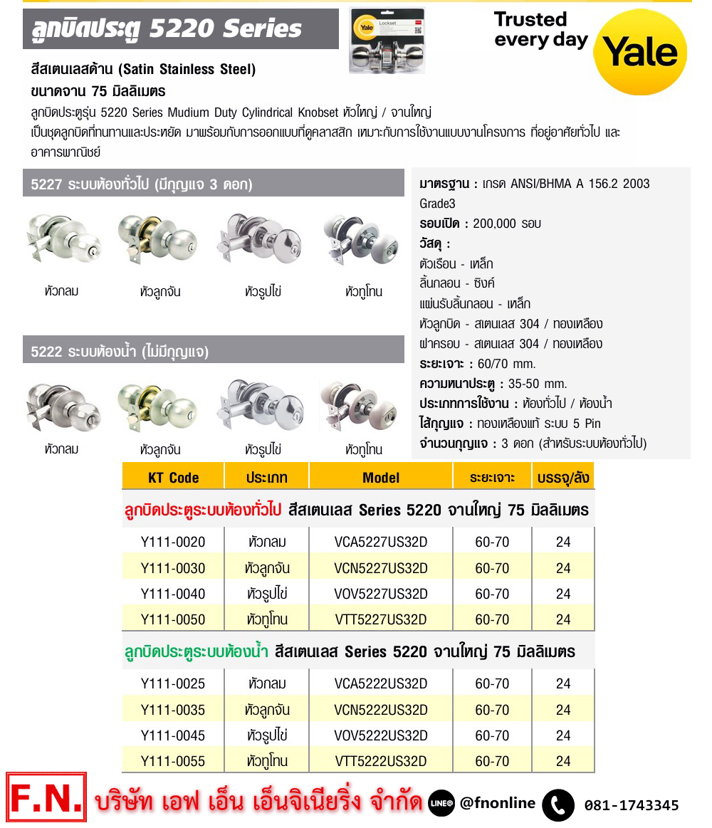 • ลูกบิด : สแตนเลสเกรด 201