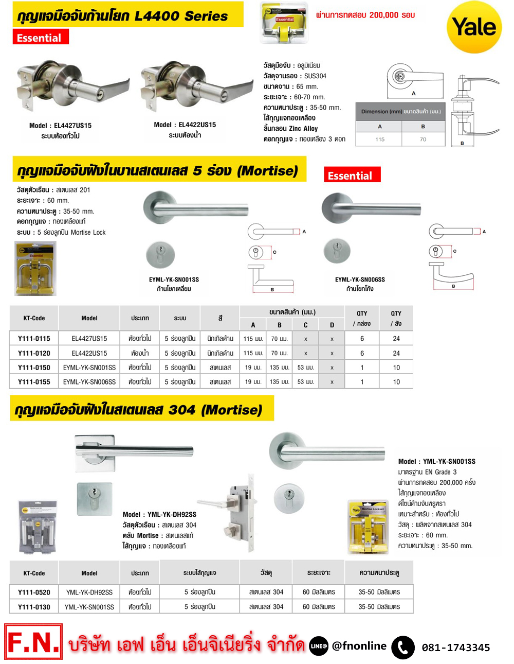 • วัสดุ มือจับ อลูมิเนียม / จานรอง สเตนเลส 304 ระยะเจาะตลับกุญแจ 60 มิลลิเมตร หรือ 70 มิลลิเมตร