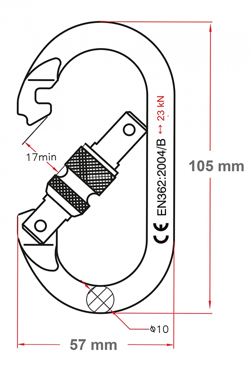 YAMADA Y-CO/1T-S คาราบิเนอร์ทรงโอ ห่วงเซฟตี้ พร้อมล็อคเกลียว ทนแรงดึงได้ถึง 22Kn