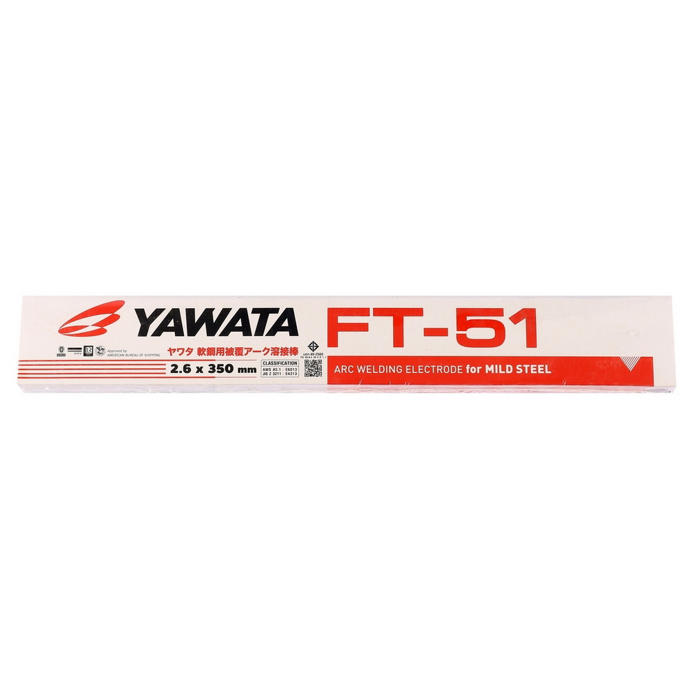 • ยาวาต้า เอฟที-51 สำหรับเหล็กเหนียวใช้เชื่อมเหล็กเหนียว สำหรับงานโครงสร้างเหล็กทั่วไป และงานเชื่อมเรือเดินทะเล เชื่อมง่ายและเชื่อมได้ทุกท่าเชื่อม คุณภาพสูง แนวเชื่อมสวยงาม เชื่อมชิ้นงานบาง ๆ ได้ดี โดยเกิดการบิดตัวน้อยมาก